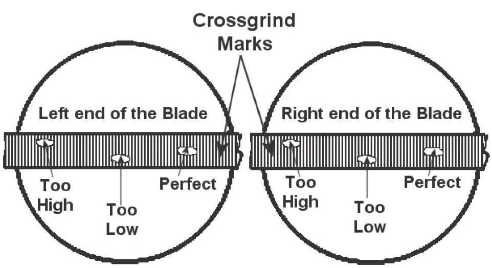 If your marks are reading too high, then you need to adjust the holder up. If your marks are reading too low, then you need to adjust the holder down. Repeat this process until you have found the center. Once you have found the center, you are all set to start sharpening.